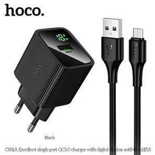 Сетевой зарядный адаптер Hoco CS81A - мощный, легкий и практичный в использовании блок питания с одним USB выходом и поддержкой быстрой зарядки. Он позволит в короткие сроки восполнить уровень заряда вашего гаджета благодаря эффективной выходной мощности 18W. Адаптер имеет стильный дизайн и компактные размеры, поэтому аксессуар легко поместится в сумке, рюкзаке или кармане, и вы с комфортом сможете взять его с собой на работу или в путешествие. Выполнен из качественного ABS-пластика и огнезащитного PC. В комплекте с кабелем micro USB длиной 1м