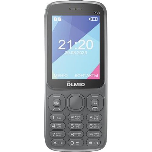 Тип: моноблок Модель:Olmio P38 Стандарт связи:2G Кол-во SIM-карт:2 шт. Тип дисплея: цветной Диагональ дисплея:2.8 " Разрешение дисплея:320x240 пикс. Фотокамера (основная):0.3 Мпикс. Емкость аккумулятора:2500 мАч Разъем для синхронизации:microUSB Разъем для наушников:3.5 мм Фонарик: FM-радио:да GPS/ГЛОНАСС: нет