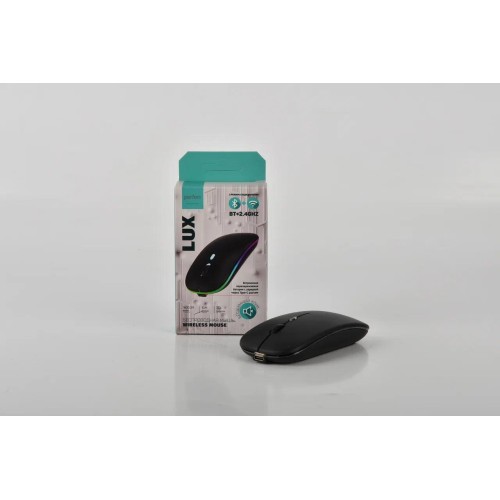 МОДЕЛЬ: LUX (БЕСПРОВОДНАЯ) • Два режима подключения (радиочастота 2,4 ГГц или Bluetooth) • Усовершенствованная беспроводная технология (радиус работы до 10 м) • Высокоточный сенсор с переключаемым разрешением: 800/1200/1600 DPI • Четыре кнопки с колесом прокрутки • Бесшумные кнопки • Прорезиненное колесо прокрутки • PlugnPlay, не требуется установка ПО • Симметричная форма мыши подходит для правой и левой руки • Внутренняя контурная RGB подсветка • Мини-ресивер USB (в комплекте) • Зарядка через кабель Type-C (в комплекте) • Выключатель питания мыши • Системные требования: Windows 10/8/7/XP, Mac OS, свободный порт USB • Размеры: 112 ? 57,2 ? 25,9 мм