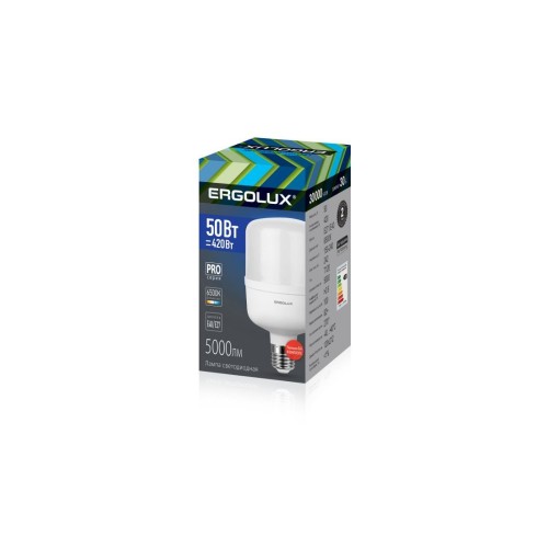 Потребляемая мощность, Вт 50 Цоколь E40 Тип лампы Высокой мощности Аналог лампы накаливания 420 Световой поток, Лм 5000 Цветовая температура, K 6500K — Дневной свет Индекс цветопередачи 82+ Угол светового пучка 270 Напряжение 150-270 Рабочая температура, °C -30…+40°С Размеры лампы (DxL), мм 205*120 Срок службы 30000