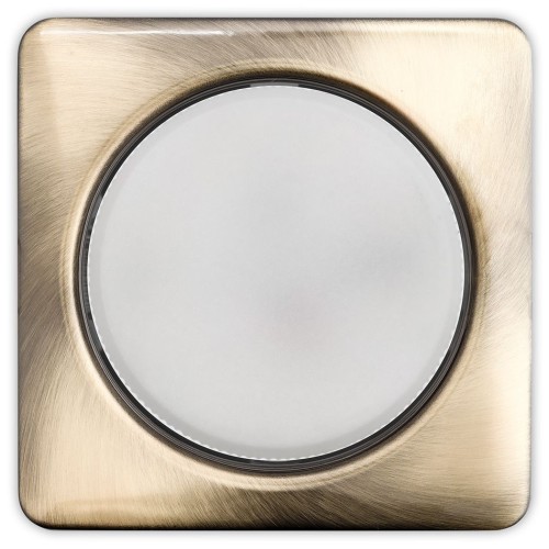 Напряжение: 220-240 В; 50/60 Гц; Максимальная мощность ламп: 13 Вт; Цоколь: GX53 (входит в комплект); Тип лампы: GX53 (не входит в комплект); Размер св-ка: 107*107*40 мм; Размер вырезного отверстия: 90 мм; Материал: металл; Цвет: бронза; Термокольцо: вхо
