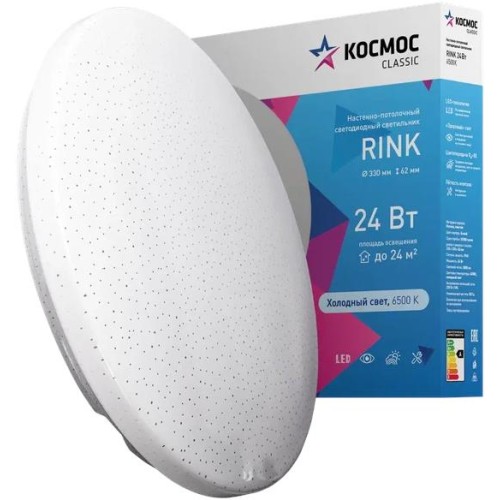 Настенно-потолочный светодиодный светильник Космос Classic RINK 24Вт 230В. Холодный свет 6500K. LED технология. Распределённый световой поток. Площадь освещения 24 м?. Размер светильника O330х62мм. "Здоровый" свет - свет без пульсаций и мерцания не утомляет глаза. Цветопередача Ra>80 - предметы выглядят натурально, свет не кажется неприятным. подходит как для натяжных потолков, так и для стандартных поверхностей, благодаря чему применение возможно практически в любом помещении дома: на кухне, в спальне или даже в коридоре. Помимо технических характеристик стоит отметить простоту установки: крепление доступно даже тем, кто ранее не занимался монтажными работами самостоятельно. Гарантия 2 года. Степень защиты IP40. Инструкция в комплекте.