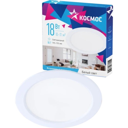 Тонкая светодиодная панель 18 Вт под стандартное посадочное место 145-155мм. Осветит пространство площадью 10-11 м?. Совместима с любыми типами подвесных потолков: натяжных, реечных, из ГКЛ и др. Толщина панели 23мм, диаметр 167мм. Стабильный свет без па