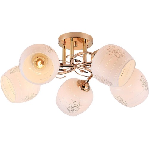 Потолочный светильник 5х40Вт E27, металл/стекло, золото