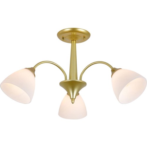 Люстра на штанге 3х60Вт Е27, металл/стекло, золото/белый матовый