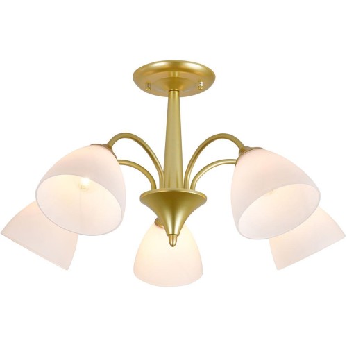 Люстра на штанге 5х60Вт Е27, металл/стекло, золото/белый матовый