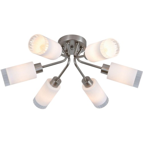 Люстра потолочная 6x40Вт E14, металл/стекло, никель/белый/прозрачный/рельефный