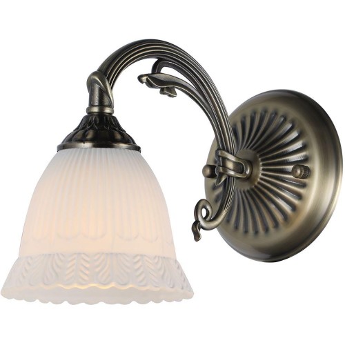 Настенный светильник 1х60Вт E27, металл/стекло, бронза/плафон белый матовый