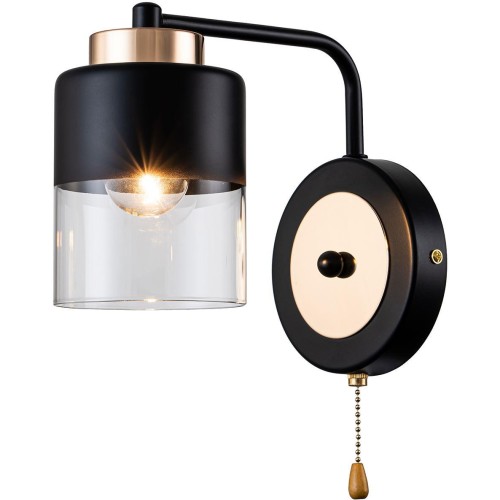 Настенный светильник 1x40Вт E27, металл/стекло, чёрный/золото