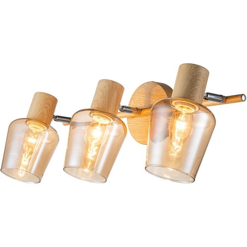 Настенный светильник 3x40Вт E14, металл/стекло, дерево