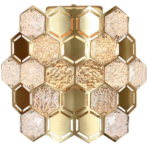 Мед вызывает приятные ощущения и даже счастье у некоторых людей. Сладость стимулирует выработку дофамина - гормона, который отвечает за чувство удовлетворения и радости. Светильник серии DELIZIA словно услада для вашего дома. Сочетание текстурного стекла и металлической арматуры в форме сот собирают светильник в единый образ домашнего уюта и тепла. Размер 225*100*210 Мощность E14 1?40W Цвет ЛАТУНЬ/ПРОЗРАЧНЫЙ С ЭФФЕКТОМ КАПЕЛЬ Материал МЕТАЛЛ/ХРУСТАЛЬ
