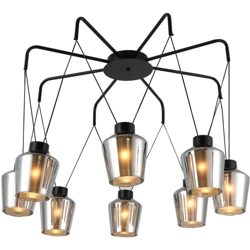 Люстра подвесная 8x40Вт E27, металл/стекло, черный, дымчатый плафон