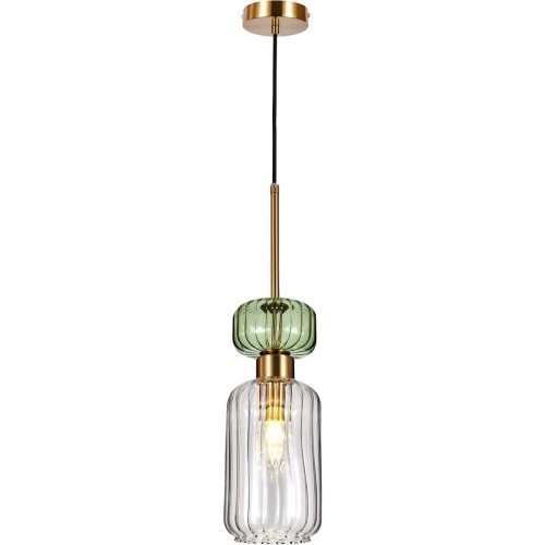 Подвесной светильник 1x60Вт E14, металл/стекло, античная бронза/зеленый/прозрачный