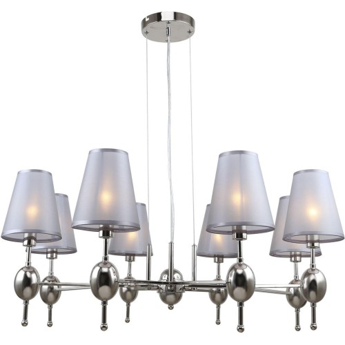 Подвесной светильник 8х40Вт E14, металл/ткань, никель/серый плафон