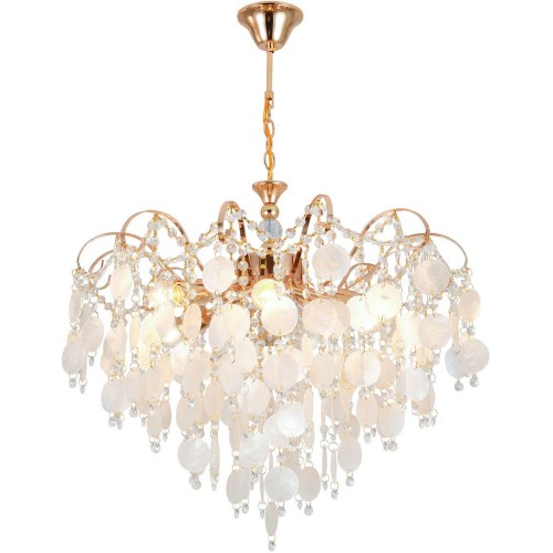Люстра подвесная 6x60Вт Е27, металл/перламутр/хрусталь, золото/матовый/прозрачный