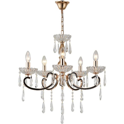 Люстра подвесная 5x40Вт E14, металл/хрусталь, золото/прозрачный