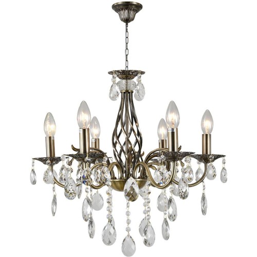 Люстра подвесная 6x40Вт E14, металл/хрусталь, античная бронза/прозрачный