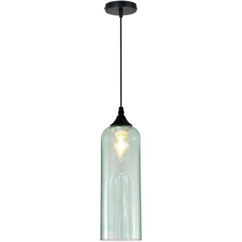 Подвесной светильник 1х40Вт Е27, металл/стекло, черный, зеленый плафон