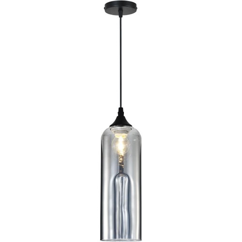 Подвесной светильник 1х40Вт Е27, металл/стекло, черный, дымчатый плафон