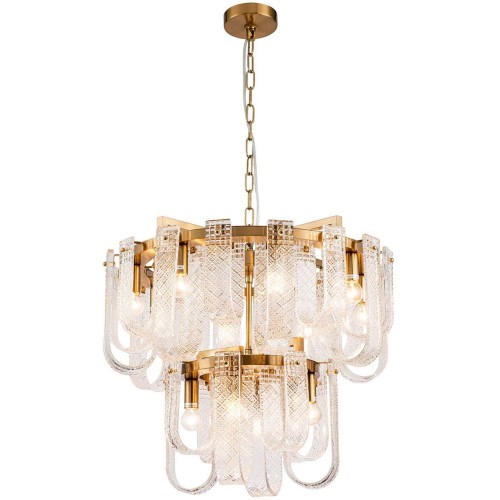 Идею для создания светильников серии BRINA дизайнер почерпнул у утонченных морозных узоров, созданных самой природой. Изогнутой формы стёкла, исполняющие функцию плафона, украшены изящным, еле заметным рельефом, а благородный бронзовый оттенок каркаса придает прозрачному плафону особое тепло и насыщенность. Такие светильники станут запоминающейся изюминкой вашего пространства и подарят ощущение уюта и гармонии. Размер 620*620*535/1310 Мощность E14 40W*12 Цвет БРОНЗА/ПРОЗРАЧНЫЙ Материал МЕТАЛЛ/СТЕКЛО