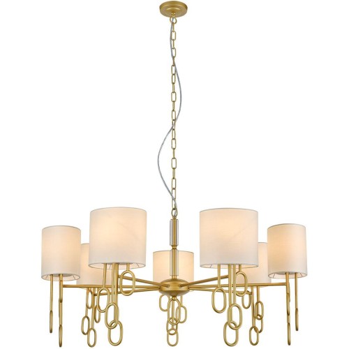 Коллекция светильников AMALI, в стиле неоклассика, создана для любви. Молочный тканевый плафон излучает мягкое, тепловатое сияние, наполняя пространство особым уютом, словно обнимая каждого, кто пересекает порог пространства. Металлический декор, изящно изогнутый дополняет композицию. Плавные формы светильников олицетворяют стремление к лучшему, к большим чувствам, которые приносят свет в Ваши сердца. Коллекцию AMALI очень широкая и включает люстры на 5 и 7 ламп, настольную лампу и торшер, настенное бра и одиночный подвес. Размер 850*850*580/1250. Мощность E14 40Wх7 Цвет ЗОЛОТО/МОЛОЧНЫЙ Материал МЕТАЛЛ/ТКАНЬ