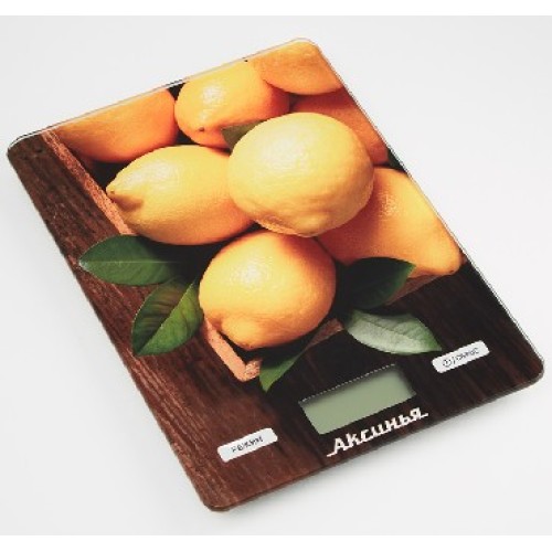 АКСИНЬЯ КС-6514 " Лимоны ": 5кг, стекло Параметры Предельная масса взвешивания 5 кг Точность взвешивания ± 1 г Размер весов 21,5х15х2см Описание Платформа из упрочненного стекла LCD дисплей Индикатор уровня заряда батареи и перегрузки весов Петелька для подвешивания Противоскользящие ножки Функция измерения объема жидкости: молоко, вода Функция сброса веса тары и обнуления позволяет последовательно взвешивать ингредиенты блюда, не учитывая массу посуды Выбор единицы измерения Автообнуление/автоотключение Электропитание: 1 литиевая батарейка на 3 В (в комплекте) Производитель: Россия