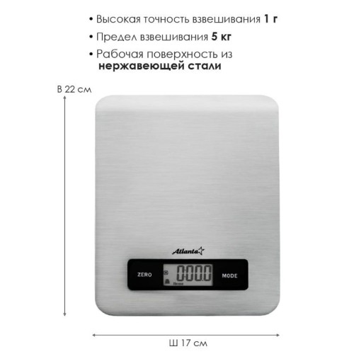 Весы кухонные ATLANTAATH-6196 (SILVER)
