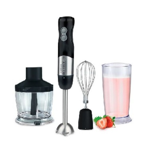 Блендер погружной. Мощность: 800 вт, Количество скоростей: 6, Турборежим, Плавная регулировка скорости, Управление: механическое, Материал корпуса: нержавеющая сталь/пластик, Материал погружной части: нержавеющая сталь, Емкость измельчителя: 500 мл, Емкость мерного стакана: 600 мл, Колка льда, Венчик для взбивания, Мерный стакан, Длина сетевого шнура: 120см, Измельчитель, Цвет: Черный.