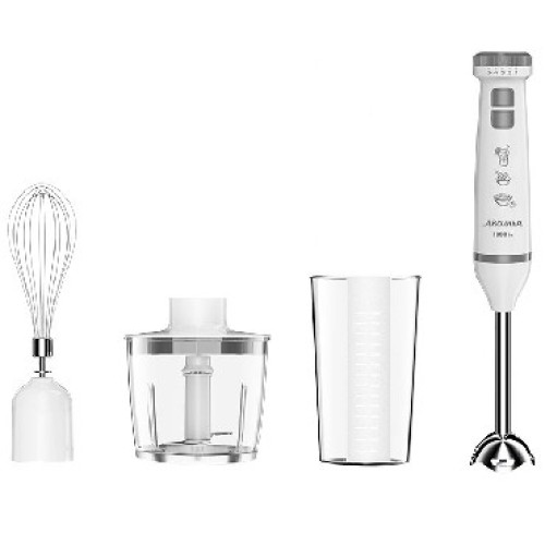 Номинальная потребляемая мощность 1000 Вт Объем чаши измельчителя 500 мл Объем мерного стакана 700 мл Блендер представляет собой многофункциональное устройство для смешивания, измельчения и взбивания продуктов и жидкостей в бытовых условиях Нож и насадки из нержавеющей стали Три сменных насадки: насадка для смешивания венчик для взбивания измельчитель Мерный стакан 5 скоростных режимов Режим «ТУРБО» Плавное переключение скоростей Цвет: белый с серым Производитель: Россия