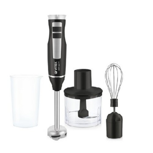 Блендер погружной. Мощность: 1000 вт, Турборежим, Плавная регулировка скорости, Управление: механическое, Материал корпуса: пластик, Материал погружной части: нержавеющая сталь, Емкость измельчителя: 450 мл, Емкость мерного стакана: 700 мл, Венчик для взбивания, Длина сетевого шнура: 110см, Цвет: Черный/серебро