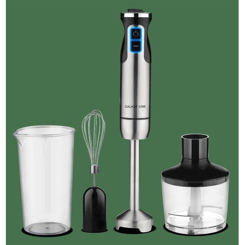 Galaxy LINE GL 2134 Блендер погружной 1350 Вт, 17 000 об/мин, 12 скоростей + режим «ТУРБО», мерный стакан 700 мл, насадка-блендер из нержавеющей стали, насадка-венчик, чаша измельчителя объемом 860 мл, защита от перегрева, двухлопастный нож, 220-240 В, 50 Гц,