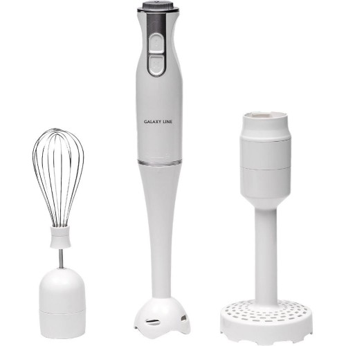 Блендер Galaxy LINE GL 2104, белый с серебристым, погружной, 800 Вт, 15000 об/мин, режим "ТУРБО", измельчение, взбивание и приготовление пюре, нож из нержавеющей стали, медный двигатель DC, защита от разбрызгивания,книга рецептов