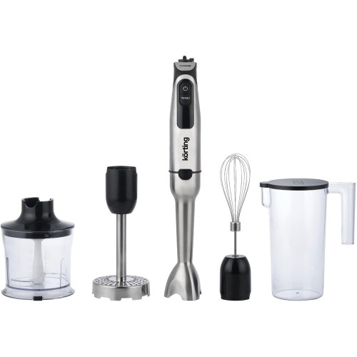 Компактный блендер с комплектацией 4 в 1: блендер, измельчитель, миксер и насадка для приготовления пюре. 6 скоростей с плавной регулировкой и режим Turbo. Сверхпрочная насадка Tulip-О для создания воздушной текстуры блюда, 4-лепестковый нож блендера 4 Titanium PRO с титановым покрытием сохранит остроту и прочность на долгие годы. DMP + двойная защита двигателя (от перегрева и перегрузки). Вместительный мерный стакан 1,0 л с защитной крышкой. Чаша измельчителя объемом 0,5 л. Мощность 1200 Вт, Напряжение 220-240 В, ~ 50/60 Гц.