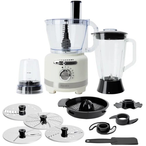 Универсальный кухонный комбайн R108-105 мощностью 1000 Вт с 6 скоростями и импульсным режимом станет идеальным помощником на кухне. Прибор работает от сети 220-240 В и оснащен тремя емкостями: чаша измельчителя (3 л), блендер (1,5 л, стеклянная чаша) и кофемолка (0,5 л). Корпус выполнен из прочного пластика, а режущие элементы - из нержавеющей стали. Элегантный зефирный цвет придает устройству стильный вид. Комбайн предлагает широкий диапазон скоростей от 5000 до 18000 об/мин с автоматическими режимами: колка льда (40 сек), приготовление смузи (3 мин), замес теста, измельчение (30 сек) и самоочистка (6,5 сек). Удобное ручное управление с бесступенчатой регулировкой и светодиодной подсветкой делает процесс приготовления комфортным. В комплектацию входят: основание с чашей, блендер, эмульгатор, ножи для измельчения и теста, лопатка, 4 диска для нарезки, соковыжималка, кофемолка, а также руководство пользователя и две коробки (подарочная и транспортировочная).