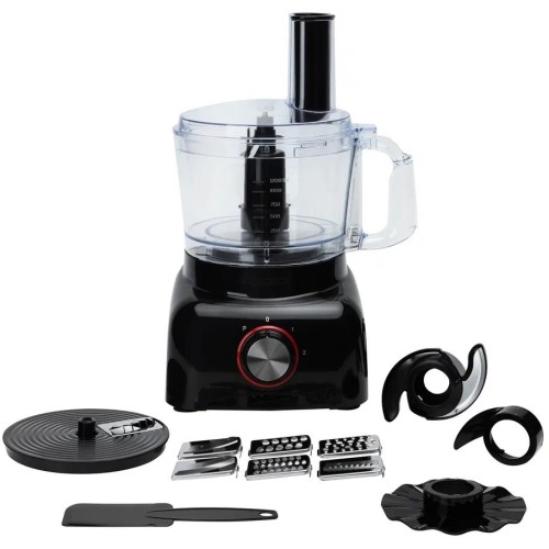 Кухонный комбайн с механическим управлением и мощностью 600 Вт станет отличным помощником на кухне. Он оснащен чашей объемом 1,2 л, изготовленной из пластика, а корпус также выполнен из прочного пластика. Лезвия и нож для измельчения сделаны из нержавеющей стали, а нож для теста - из пластика. Основной цвет устройства - черный, что придает ему стильный вид. Комбайн предлагает 2 скорости (1400 и 1800 об/мин) и импульсный режим для удобного контроля процесса приготовления. Среди особенностей - защитная крышка от брызг, нескользящие ножки для устойчивости, но важно помнить, что прибор не подходит для измельчения орехов, льда и горячей пищи. В комплект входят: основание с чашей, диск-эмульгатор, нож для измельчения, нож для теста, пластиковая пластина для лезвий, набор из 7 лезвий для нарезки (включая тёрку для драников, волнообразное лезвие и насадки для картофеля фри), лопатка, руководство пользователя и две коробки - подарочная и транспортировочная.