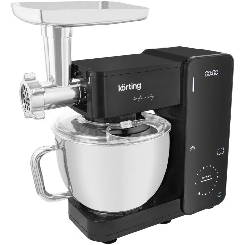 Планетарный миксер с 3-мя насадками Мясорубка Насадка для приготовления сосисок и кебаб Автоподъём и автоспуск механизма замешивания 18 скоростных режимов с плавным переключением и Touch-контроль DMP+ Двойная защита двигателя c высокой мощностью (от перегрева, от перегрузки) Чаша 6 л из нержавеющей стали с ручкой для удобства Электронный таймер работы Комплектация насадок: насадка для смешивания крюк для замешивания теста венчик для взбивания насадка-мясорубка с 2 дисками из нержавеющей стали (5 и 7 мм) насадка "Кеббе" для приготовления сосисок и кебаб Максимальная мощность: 1 500 Вт