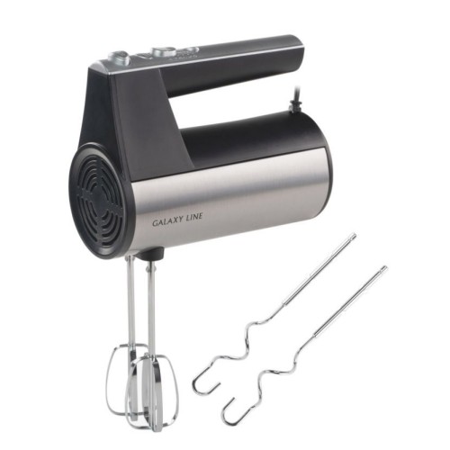 GALAXY LINE GL 2223 Номинальная потребляемая мощность 300 Вт Максимальная мощность 400 Вт 5 скоростей + режим «Турбо» 2 насадки-венчика 2 насадки для замешивания теста Кнопка для извлечения насадок Длина шнура питания 80 см Книга рецептов в комплекте Питание 220-240 В ~ 50 Гц Гарантия 2 года