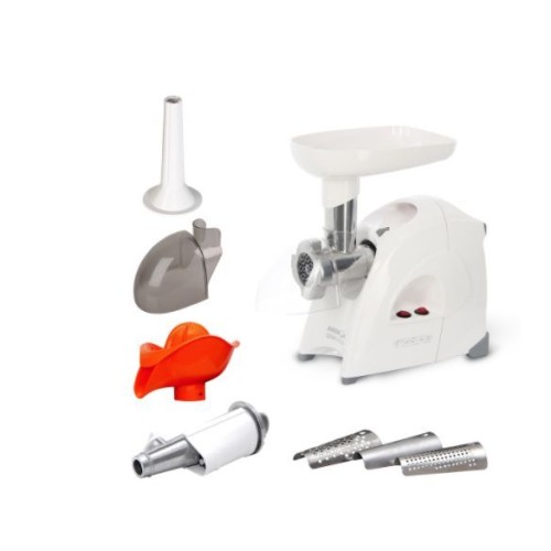 Габаритные размеры (ШxВxГ) 25,5/16,9/ 24,2 см * Производительность 2 кг/мин * Реверс Есть * Мощность 1700 Вт * Вес 4,7 кг * Цвет Белый * Двойная защита от перегрузки; Функция «реверс» для предотвращения наматывания жилок на шнек; Отсек в корпусе для шнура питания, хранения ножа и насадок; 3 вида решеток для получения фарша разной консистенции - с диаметром отверстий 4,9 мм и 7 мм, а также овальными отверстиями; Экран для защиты от брызг, который поможет сохранить кухню в чистоте; Высокое размещение шнековой камеры; Возможность вертикального хранения для экономии пространства на кухне; Ручка для переноски; Устойчивые нескользящие ножки для фиксации мясорубки на поверхности стола;