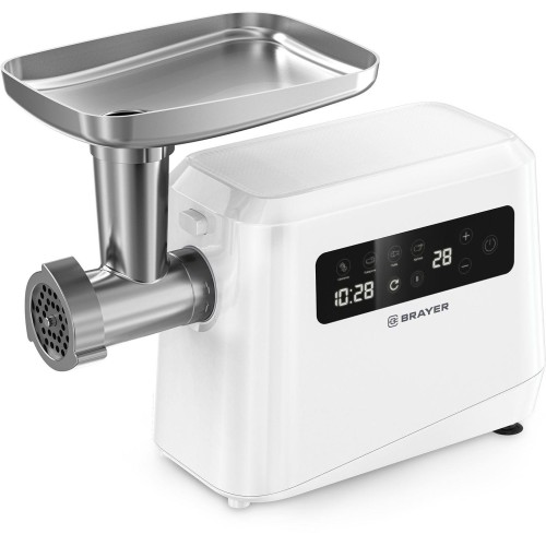 Максимальная мощность 2000 Вт Производительность 2 кг/мин Цветной LED-дисплей Сенсорное управление Функция «Реверс» 3 диска из нержавеющей стали (3 мм, 5 мм и 7 мм) Насадка для приготовления колбас Насадка «Кеббе» Насадка для драников Насадка для терки Насадка для шинковки Толкатель для продуктов Cъемный лоток из стали Прорезиненные противоскользящие ножки Защита от перегрева Максимальный уровень шума 75 дБ Электропитание 220-240 В, 50-60 Гц