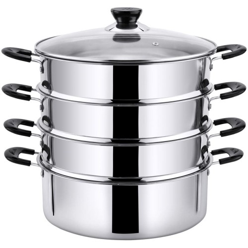 Мантоварка-пароварка Pomi dOro P630102 Vapore со стеклянной крышкой. Диаметр 26см. 3 перфорированных яруса, высота 7см. Нижняя часть мантоварки может использоваться как кастрюля, объем 4.7 литра. Изготовлена из высококачественной нержавеющей стали. Безопасна для человека и не выделяет вредных веществ при повышенных температурах. Крышка изготовлена из термостойкого стекла с отверстием для выпуска пара. Не нагревающиеся бакелитовые ручки.