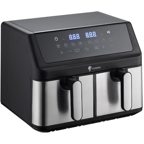 Мощность: 2100 Вт (1050 Вт+ 1050 Вт) Объем 9 л ( 4,5 л + 4,5 л) Два независимых нагревательных элемента Чаши с антипригарным покрытием Сенсорная панель управления 8 автоматических программ приготовления Регулятор температуры 80-200 С Таймер на 60 мин Автоотключение Съемная решетка Ненагревающаяся ручка Циркуляция воздуха 360 С Функция SyncPro - позволит получить готовые блюда к одному и тому же времени Книга рецептов в подарок Гарантия 2 года