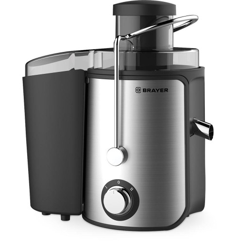 Тип: центробежная; Ручная: нет; Мощность: 800 Вт; Количество скоростей: 2; Объем резервуара для мякоти: 1.4 л; Объем резервуара для сока: 0.5 л; Особенности: система "капля-стоп", автоматический выброс мякоти, индикатор уровня сока; Материал корпуса: нержавеющая сталь, пластик