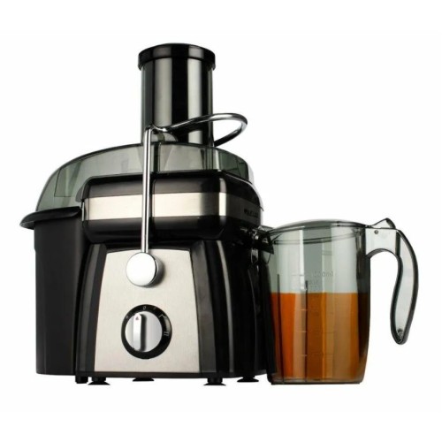 Соковыжималка центробежная. Мощность 1500 Вт, питание 220-240В, 50Гц, металлический корпус и фильтр, объем резервуара сока 1л., 2 скорости + импульный режим, широкая загрузочная горловина - 75мм, объем контейнера для жмыха 1л, функция "Капля-стоп, прорезиненные ножки, защита от перегрева и перегрузки, блокировка двигателя при открытой крышке, легкая очистка
