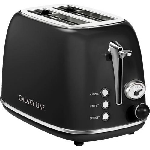 Тостер электрический Galaxy LINE GL 2920, магия черного, металл, 900 Вт, 6 степеней поджарки, метал. корпус, функция подогрева, функция разморозки, автомат. центрирование тостов, автоотключение при перегреве, кнопка отмены приг., съемный поддон для крошек