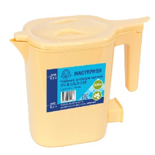 Мощность 500Вт. Объем 0,5л. Корпус пластик. Шкала уровня воды, нагревательный элемент - ТЭН спираль из нержавеющей стали, съемный шнур. Время закипания 3 мин. Цвет бежевый.
