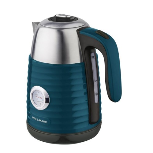 Чайник WILLMARK WEK-1738PST современный чайник с удобной ручкой, мощностью 2200Вт, объёмом 1,7 литра,с закрытым нагревательным элементом из нержавеющей стали. Удобен в эксплуатации, позволяет легко контролировать температуру воды благодаря встроенному термометру. Чайник электрический WEK-1738PST имеет двухстенную конструкцию, в которая наружняя часть выполнена из экологически безопасного пищевого пластика, внутренняя — из нержавеющей стали. Благодаря такой конструкции наружная поверхность чайника не нагревается, а при нагреве воды существенно снижается уровень шума и срок закипания. Технология термоса с двумя стенками позволит воде дольше оставаться горячей и снизит затраты на электроэнергию.
