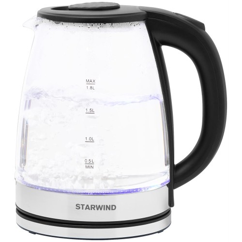 Мощность 1800 Вт Максимальный объем 1.8 л Нагревательный элемент скрытый Индикатор уровня воды Автоматическое отключение Кнопка открытия крышки Подставка 360 градусов Защита от включения без воды Подсветка воды Материал корпуса стекло и пластик