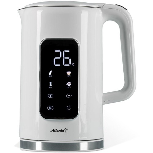 Электрический чайник ATH-2539 от Atlanta - это сочетание стиля и функциональности. ATH-2539 оснащен композитным двухслойным корпусом, внутренняя колба которого выполнена из пищевой нержавеющей стали 18/10. Это обеспечивает долговечность и безопасность использования. Чайник оснащен цифровым контролем температуры и 4 быстрыми температурными режимами. Вы можете выбрать один из них или настроить температуру вручную. Большой, яркий LED дисплей обеспечивает удобство использования и наглядность.
