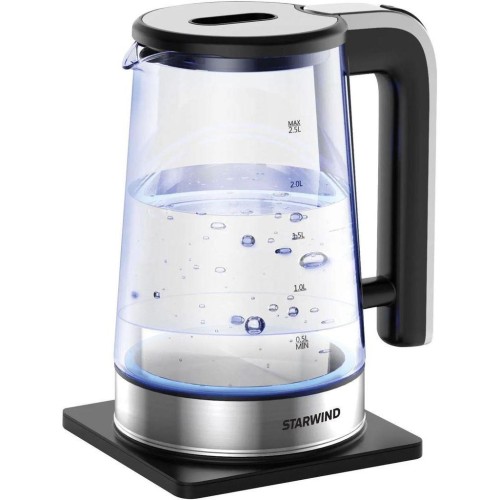 Чайник электрический. Максимальный объем: 2,2 литра, Мощность: 1800Вт, Нагревательный элемент: скрытый, Материал корпуса: стекло, Габариты упаковки (ед) ДхШхВ: 215x185x290 мм, Индикация: включения, уровня воды, Безопасность: автоотключение, защита от включения без воды, Конструктивные особенности: кнопка открытия крышки, подсветка воды, подставка 360, Срок гарантии: 12 мес. Цвет: Серебро/черный