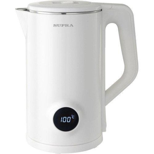 Двойные стенки корпуса. Холодное прикосновение. Светодиодный дисплей. Максимальная мощность: 2200 Вт. Объем: 1.8 л. Защита от включения без воды. Автоматическое отключение при закипании. Автоматическое отключение при снятии чайника с базы. Угол вращения 360°. Материал корпуса: нержавеющая сталь внутри, пластик снаружи.